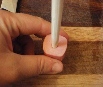 Slice each hot dog in half lengthwise. Cut each half into 3 equal pieces. Insert a craft stick or bamboo skewer into 1 end of each piece of hot dog.
