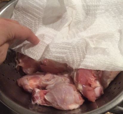 Pat chicken dry with paper towels. Coat chicken well with cooking spray.
