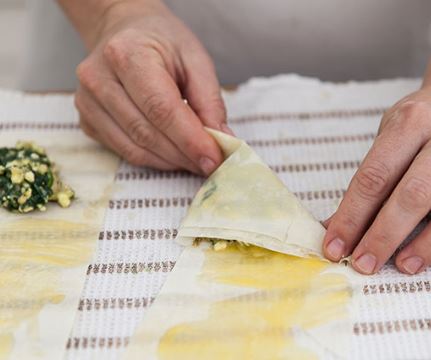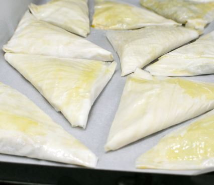 These tasty Greek phyllo pastries are filled with spinach and salty cheeses with just a little hit of lemon and heat. Classic spanakopita calls for brushing the phyllo with butter; this version calls for olive oil, which adds even more Greek flavor. Filled with nutrient-rich spinach, these crispy treats make an excellent party dish or appetizer. And do not worry you don't need to be Greek to enjoy these delicious recipe, however you may become a Greek food lover after trying this traditional recipe.