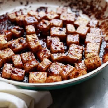 For this specific recipe, tossed in a tangy dressing rich with the flavors of honey, toasted sesame oil, and soy sauce, these crispy cubes of tofu make a hearty supper served over brown rice.