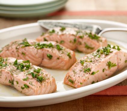 Stir together parsley, thyme, and 1/2 teaspoon of the salt in a small bowl. Brush salmon with oil; sprinkle evenly with herb mixture.