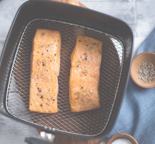Did you know your Air Fryer it’s also a fantastic oven for roasting meaty fish fillets like salmon; it’s truly super easy to make salmon in the air fryer without a bunch of fuss. All you need to do is lightly coat the salmon with olive oil, then season with salt and pepper. You barely need any oil or grease at all and that’s what makes cooking salmon in the air fryer so amazing. The salmon comes out perfect every time.