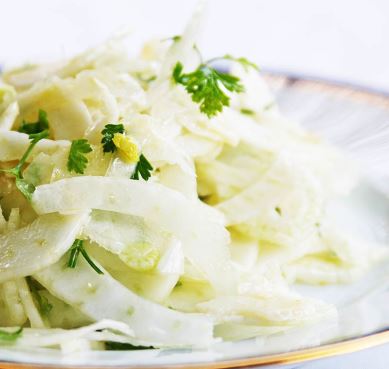And while the meat is cooking, you can easily whip up the quick and tangy fennel slaw that goes along great with salmon.