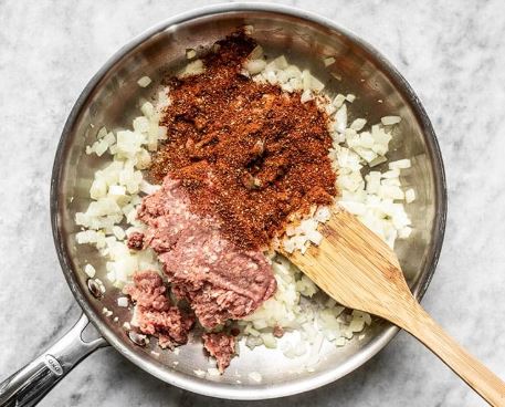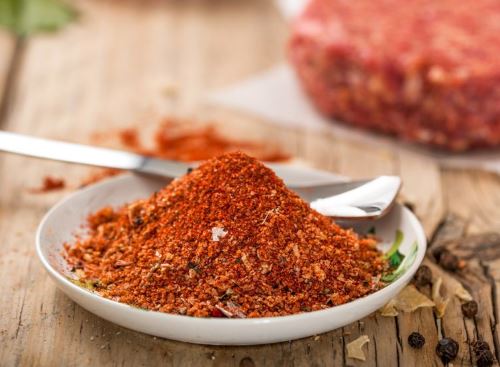 Add the seasoning to the beef in a large bowl. Mix well, but be careful not to overwork the meat as that leads to tough burgers.