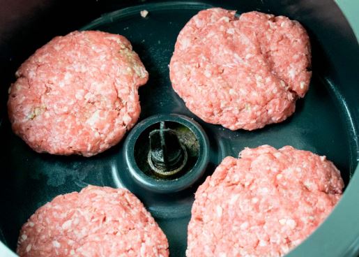 Divide the beef mixture into 4, and shape the patties. Place the patties on the tray
