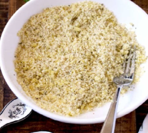 In a small bowl, mix the breadcrumbs and Parmigiana cheese and set aside